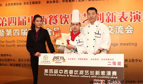 二等奖获得者唐远红的参赛菜品 本次表演赛星厨奖获得者是来自北京瑞居酒店的张玉生、二十一世纪饭店的刘延阁、捌零home西餐的李丙利、金海虹餐饮公司的赵鹏辉、卢卡斯意大利餐厅的张军、红太阳生态园的张树辉、明豪戴斯酒店的曾维建,万达铂尔曼酒店行政总厨郑宝利先生为其颁发奖杯及证书。 “第四届西餐食品饮品博览交流会”部分 本次活动特意为来宾安排了多种表演秀,有传统意式及花式咖啡秀、糖艺表演秀、花式调酒秀等 参加本次活动的参展企业有: