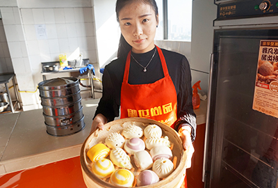 ![]() 在专业老师的教导下,她开始自己尝试和面、发面以及包揉等,出错后,老师不仅帮她纠错还帮她分析出错的原因,她还和其他学员交流心得并且互相品尝,在良好的学习氛围下,琪琪进步的很快,她所做的花式馒头和各类蒸包煎包频频获得老师和其他学员的赞誉。转眼间,琪琪自信满满的学满结业,因为成熟的技术和老师专业的开店指导让她有信心取得成功。