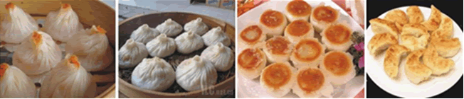 小笼包、汤包、生煎包、水煎包、汽水包、烧梅、灌汤蒸饺、锅贴饺子、北方水饺